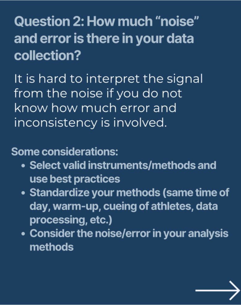 If you’re going to use data to help inform what you do and the decisions you make, you need to establish what constitutes a meaningful change. This is both determined by the error/noisiness of the data itself as well as the specific context of the data being collected.