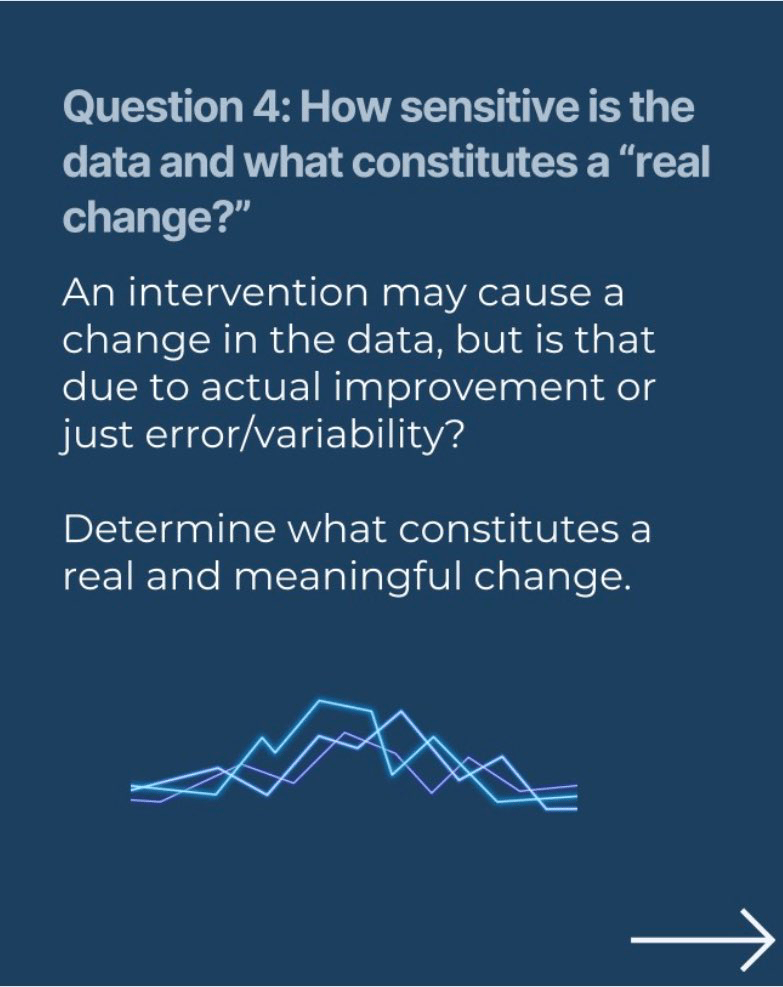 Is the change “real” or just noise? This goes back to understanding that the more variable a measure is, the larger the change required to be confident you made an actual change.